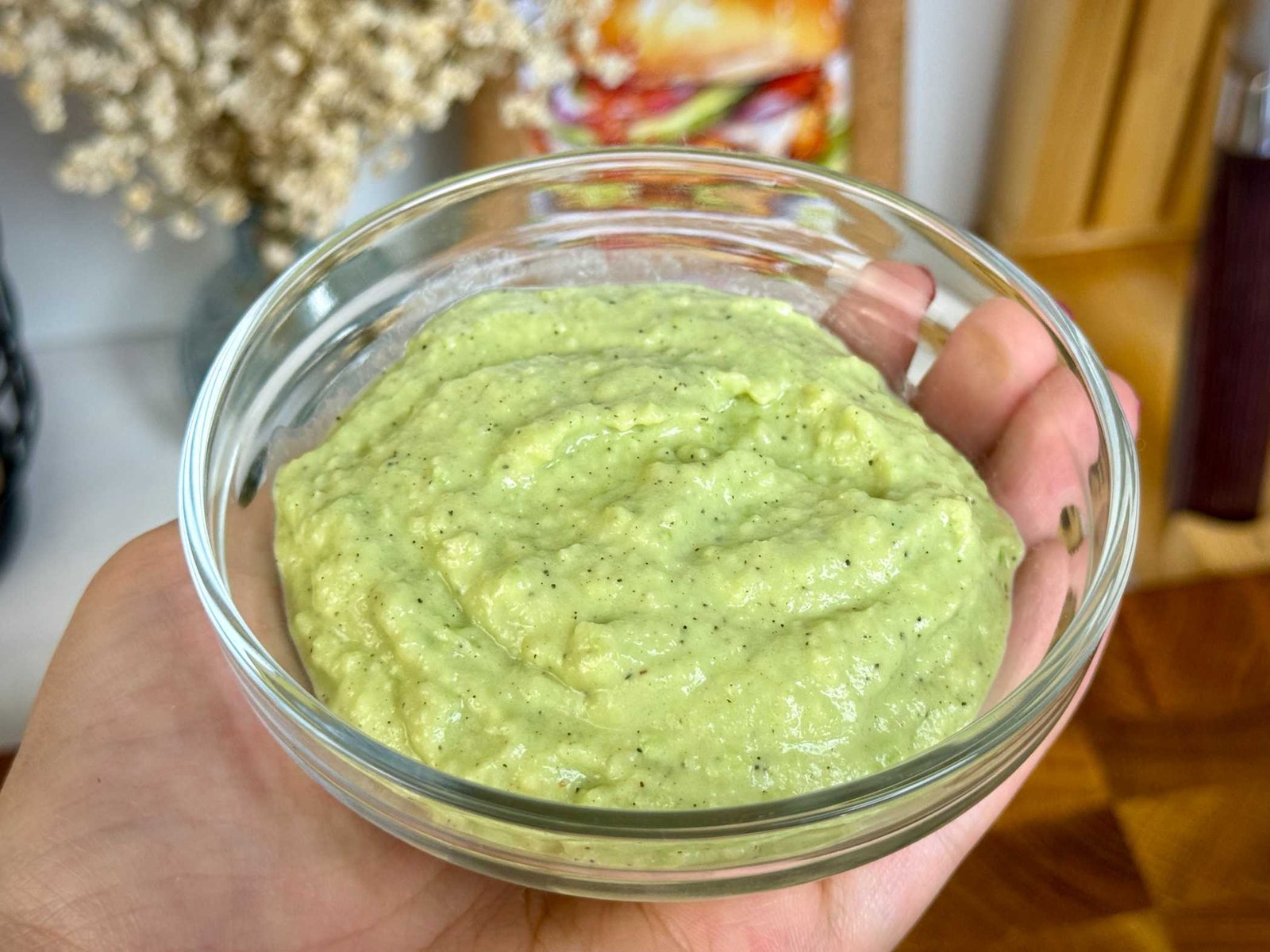 Isto uradite i sa avokado sosom. Sve sastojke izblendajte dok ne postanu potpuno glatki. On treba biti nešto rjeđi od namaza sa grahom.